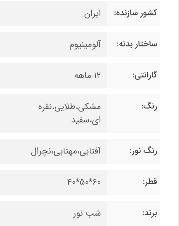 با بدنه آلومنیوم با متریال درجه یک تا یک هفته هم مرجوعی قبول میباشد در صورت نارضایتی و ارسال رایگان و پرداخت در محل میباشد